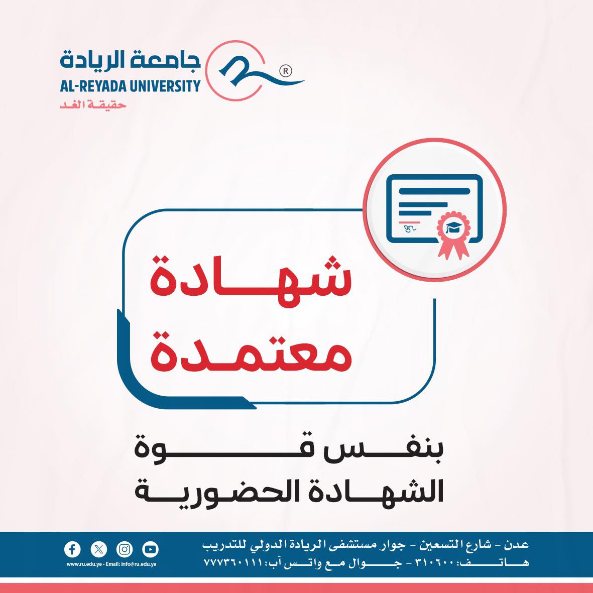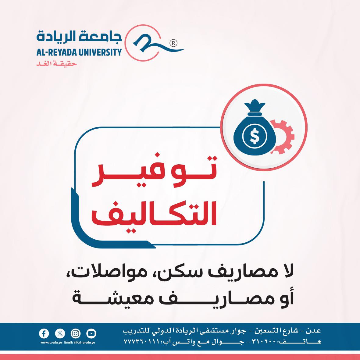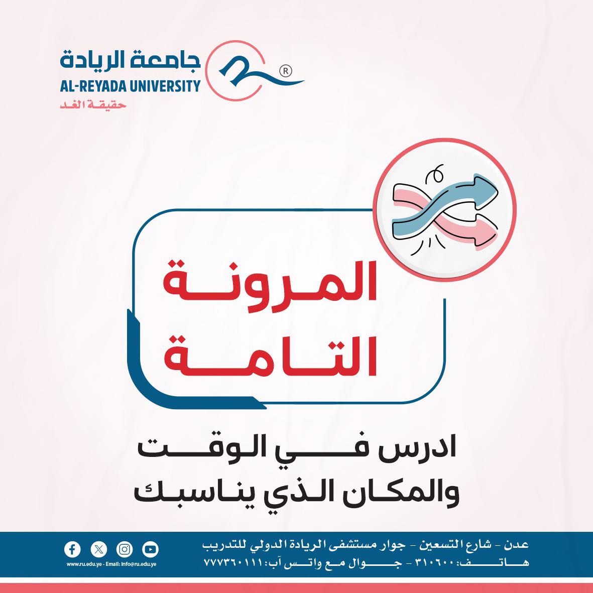 ساكن بعيد عن عدن؟ حلمك الجامعي يوقف بسبب تكاليف السكن والمواصلات؟ خلاص! جامعة الريادة جابت لك الجامعة لعندك. ادرس تخصصك اللي تحبه (أونلاين) واحصل على شهادتك المعتمدة من مدينتك.